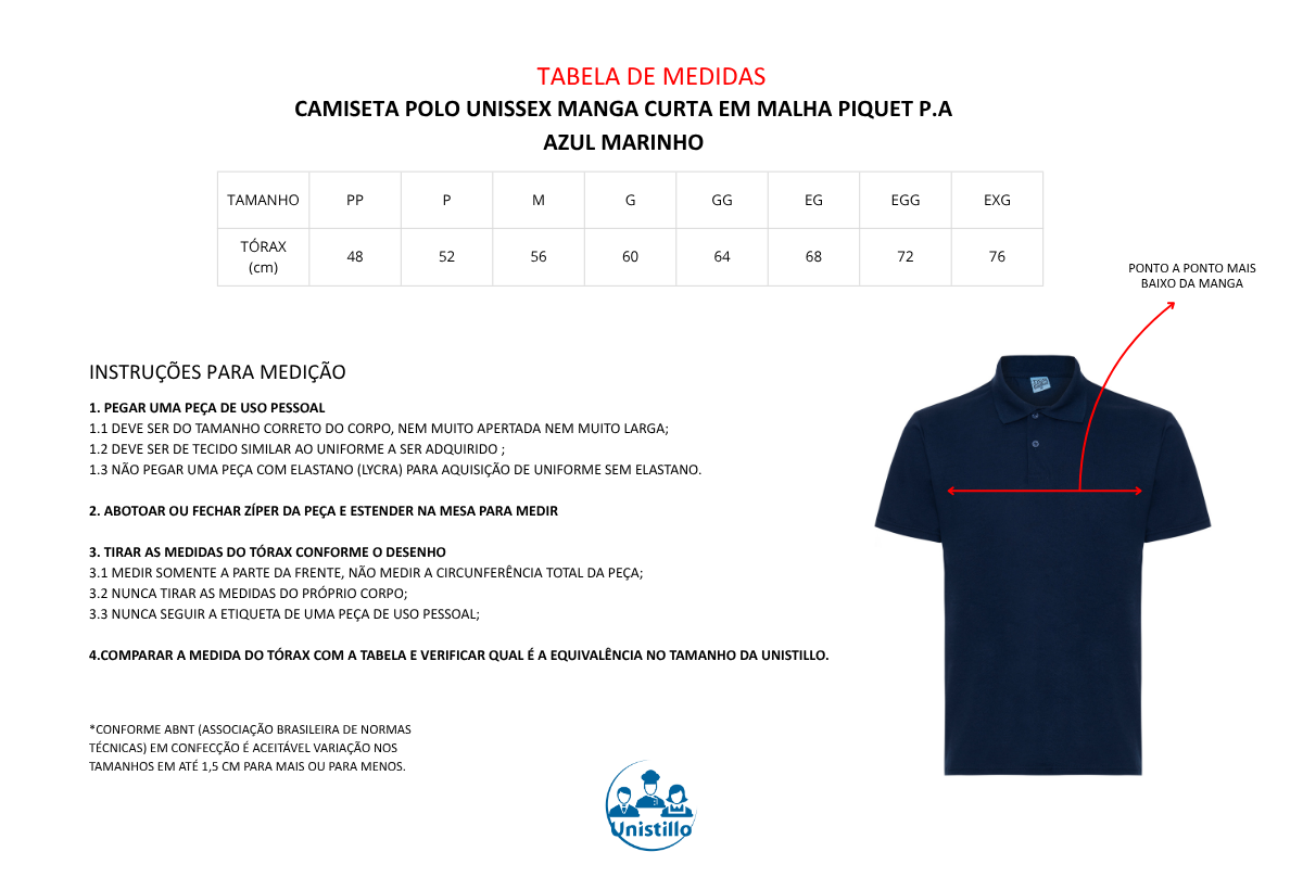 Camisa pólo Unissex manga curta em piquet pa s/ bordado Azul Marinho