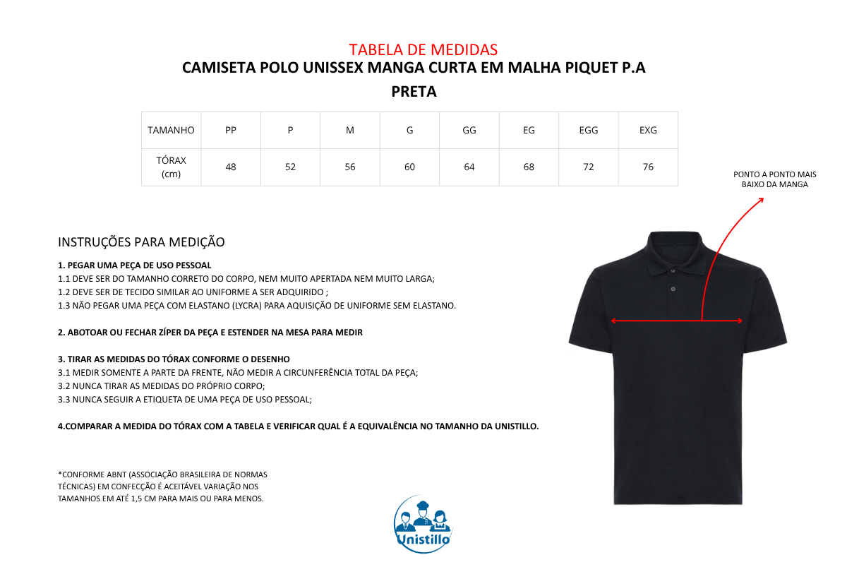 Camisa pólo Unissex manga curta em piquet pa s/ bordado Preto