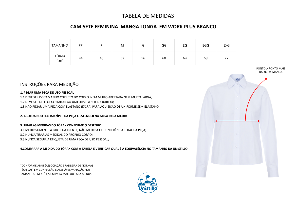 Camisete Feminina Manga Longa em Work Plus Branco. legante e prática, esta camisete feminina de manga longa é confeccionada em tecido Work Plus, que oferece toque macio, caimento impecável e alta durabilidade. A cor branca clássica garante um visual sofisticado e fácil de combinar, ideal para ambientes corporativos ou de atendimento ao público.