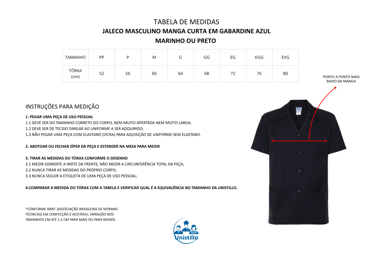 Jaleco masculino manga curta em gabardine de microfibra azul marinho. Profissionalismo e conforto em uma única peça. Este jaleco masculino de manga curta é confeccionado em gabardine de microfibra, tecido leve, respirável e de secagem rápida, que oferece durabilidade e caimento impecável. A cor azul marinho garante um visual elegante e moderno, ideal para ambientes que exigem apresentação impecável sem abrir mão da praticidade.